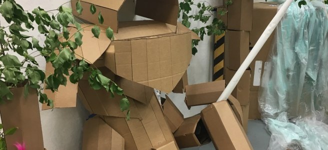 Today our group was tasked with re-making our territory installation into an absurd story. I decided to make a creature out of the cardboard trees. It may have been a tree at some point, a troll, or maybe it’s a robot just sitting by the stream. This and more is all documented in full in the link below: